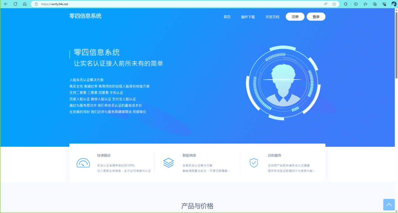 零四实名信息系统是一个针对于企业用户的实名认证聚合解决方案,能够灵活的适用于各种场景,简单的API可以方便企业更好的开发和对接服务,为企业的正规化合法化服务赋能!
